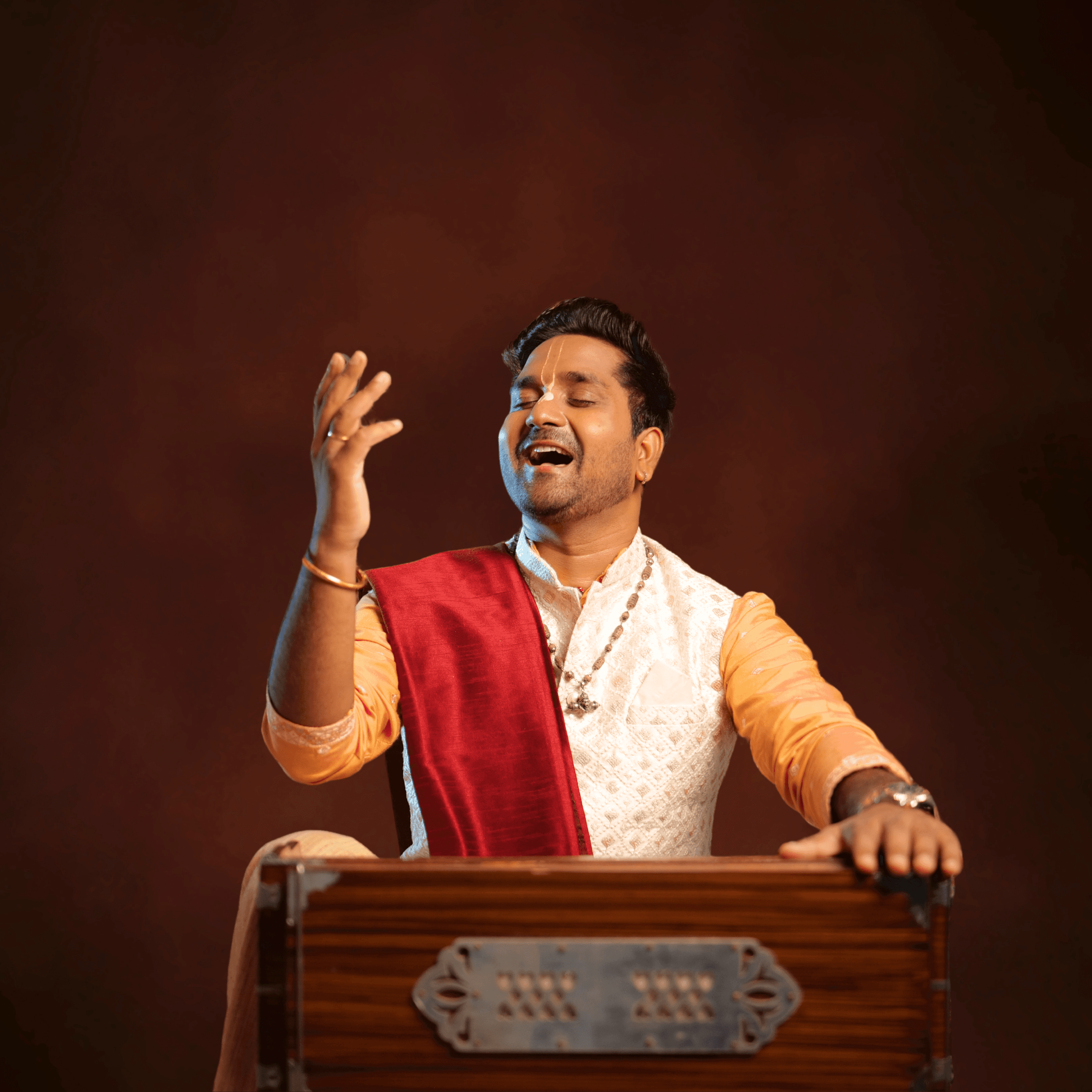 Shyam Bihari Das is a devotional singer and kirtan artist who transitioned from the commercial music world to a life of bhakti. Formerly known as Shivam Chaurasia, he worked for years in Mumbai’s music industry before answering a spiritual calling and moving to Vrindavan.